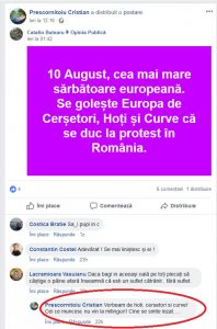 Cristian Prescorniţoiu, şeful Inspectoratului pentru Construcţii Vrancea și protejat al PSD, a făcut valuri pe internet după ce a distribuit o postare în care se susţine că „10 august, cea mai mare sărbătoare europeană. Se goleşte Europa de cerşetori, hoţi şi curve din România”.